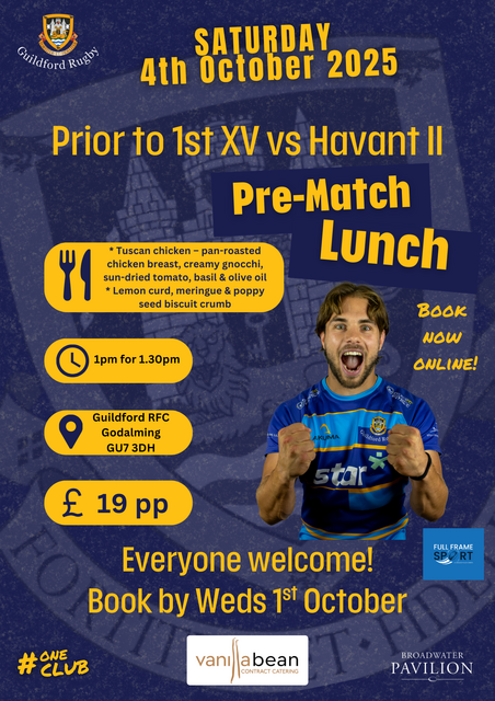 Join us for a delicious pre-match lunch provided by our new Caterers - Vanilla Bean.