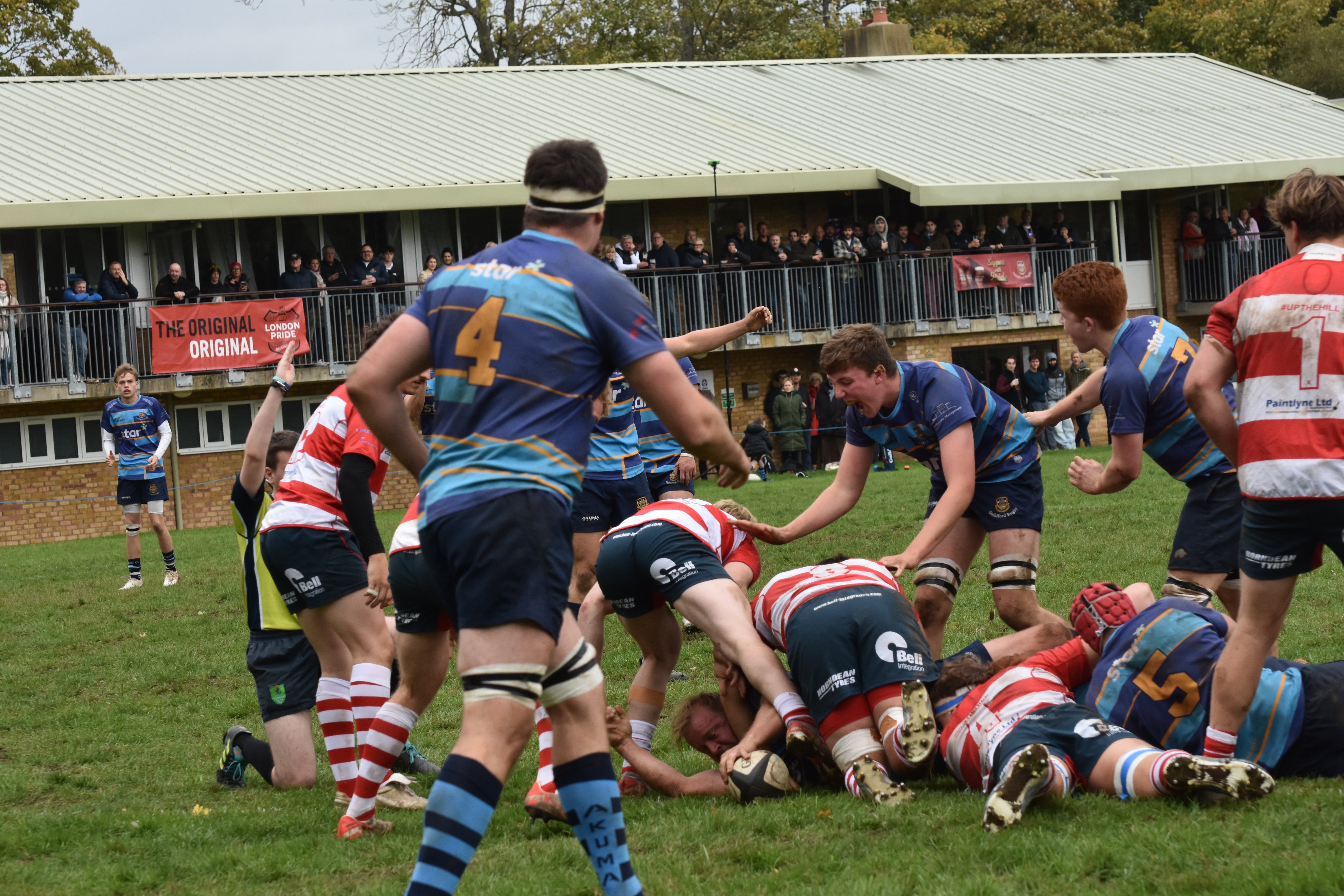 Guildford kicked off towards Broadwater School, into the teeth of the wind, and immediately looked sharp. The pack carried strongly through Josh Smith and captain Alex Burrill, both heavily involved in the opening exchanges. Cole looked comfortable in his debut outing, performing well at the lineout.